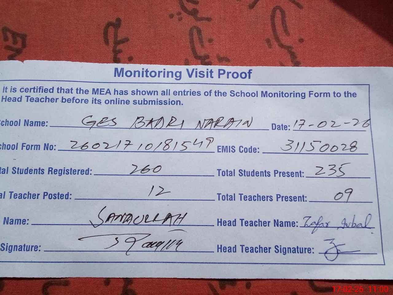 | EMIS Code: 31150028 | Name of School: GES BADRI NARIEN PUR | |||
