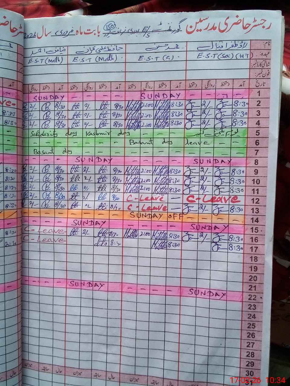 | 31**** | Mo**** Zu**** | CIV | 0 | 0 | 0 | 0 | 0 | 0 | 0 | 0 | 0 | Absent (Un-Authorized) | |