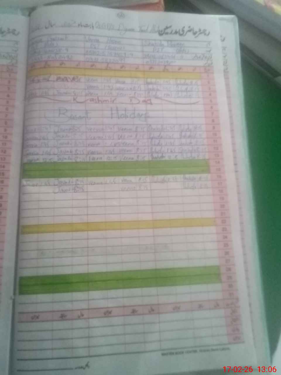 | CNIC | Full Name | Designation | R/C | Absence During Last Calender Month |