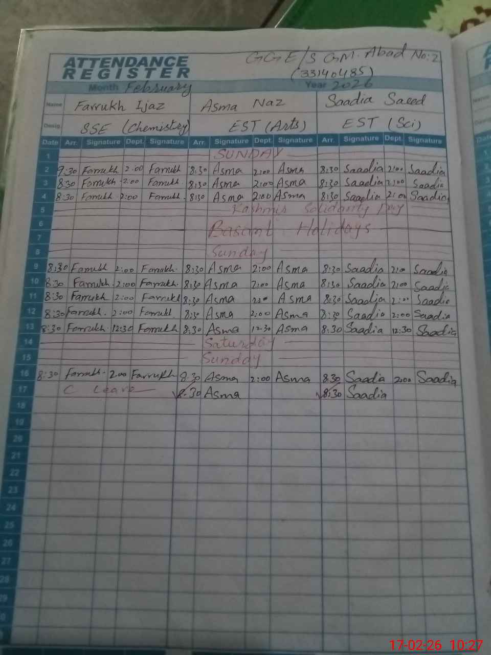 | 33**** | Fa**** Ij**** | SSE Science | Contract | 0 | 0 | 0 | 0 | 0 | 0 | 0 | 0 | 0 | Casual |