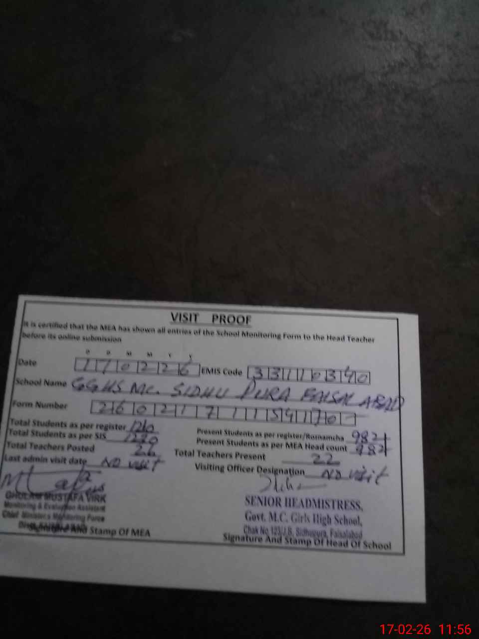 | EMIS Code: 33110340 | Name of School: GGHS MC SIDHO PURA FAISALABAD | |||