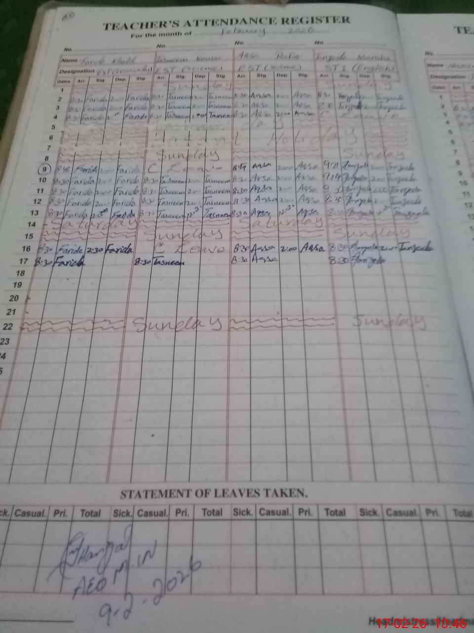 | Attendance Register | Head Teacher | MEA with School | Visit Proof |