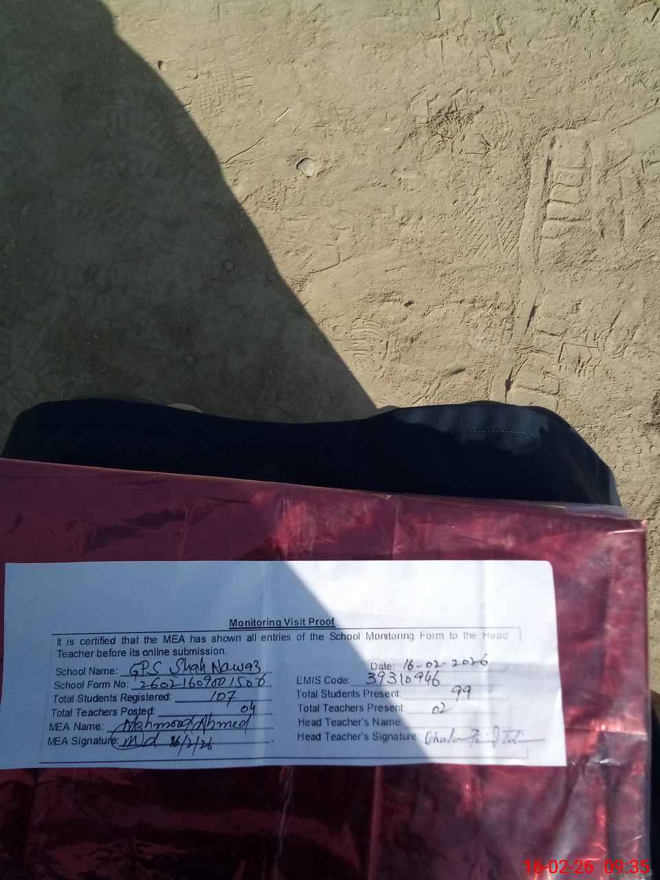 | EMIS Code: 39310946 | Name of School: GPS SHAH NAWAZ | |||