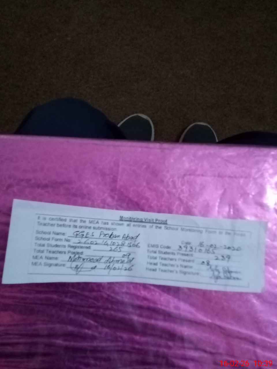 | Certified that this School was Inspected by the Undersigned MEA/DMO Today and the Information Stated Above is as Per Record. | |||||