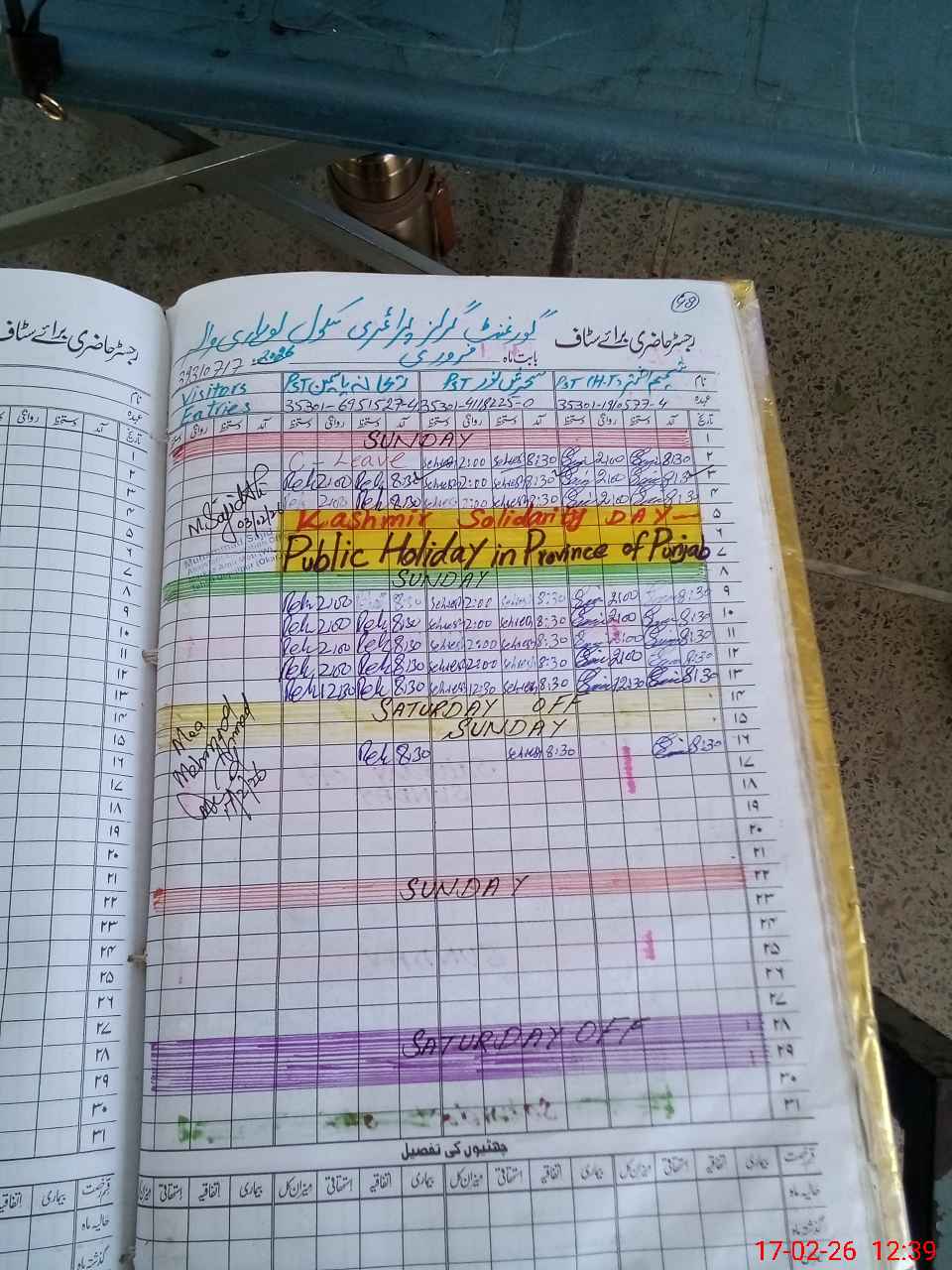 | Name: SH**** AK**** Designation: (School Headmaster's/Headmistress's) PST Phone/Cell Number: 03**** |