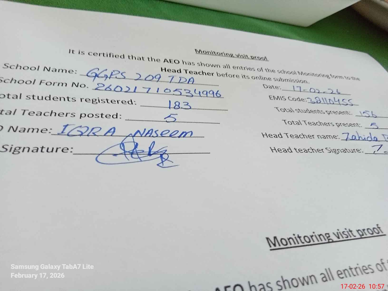 | Certified that this School was Inspected by the Undersigned MEA/DMO Today and the Information Stated Above is as Per Record. | |||||