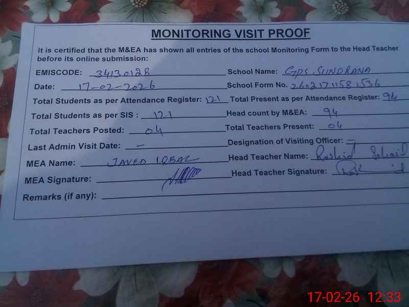 | EMIS Code: 34130128 | Name of School: GPS SUNDRANA | |||
