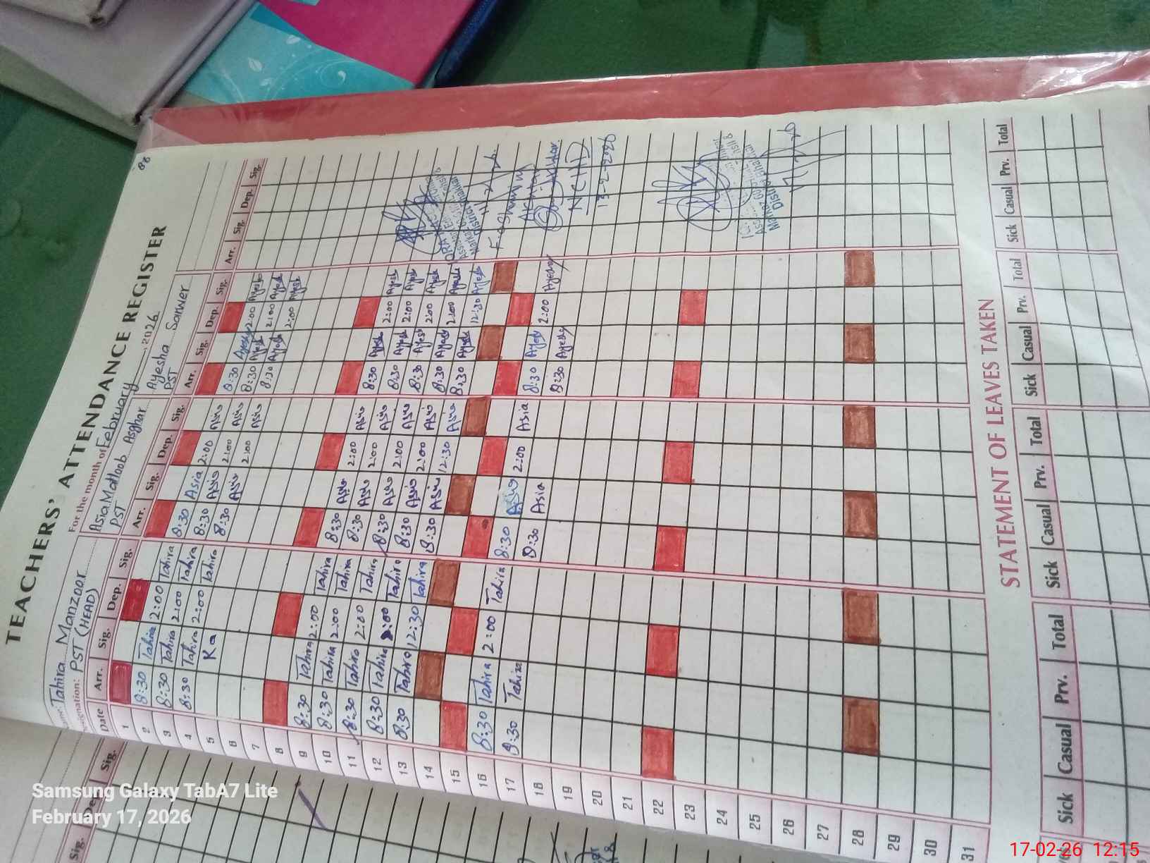 | Attendance Register | Head Teacher | MEA with School | Visit Proof |