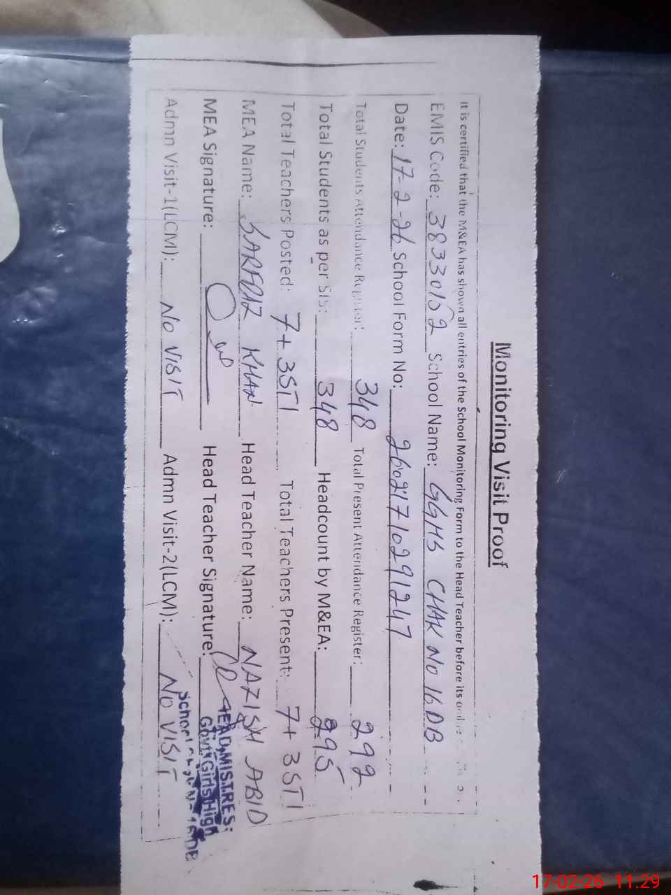 | EMIS Code: 38330152 | Name of School: GGHS CHAK NO. 16 DB | |||