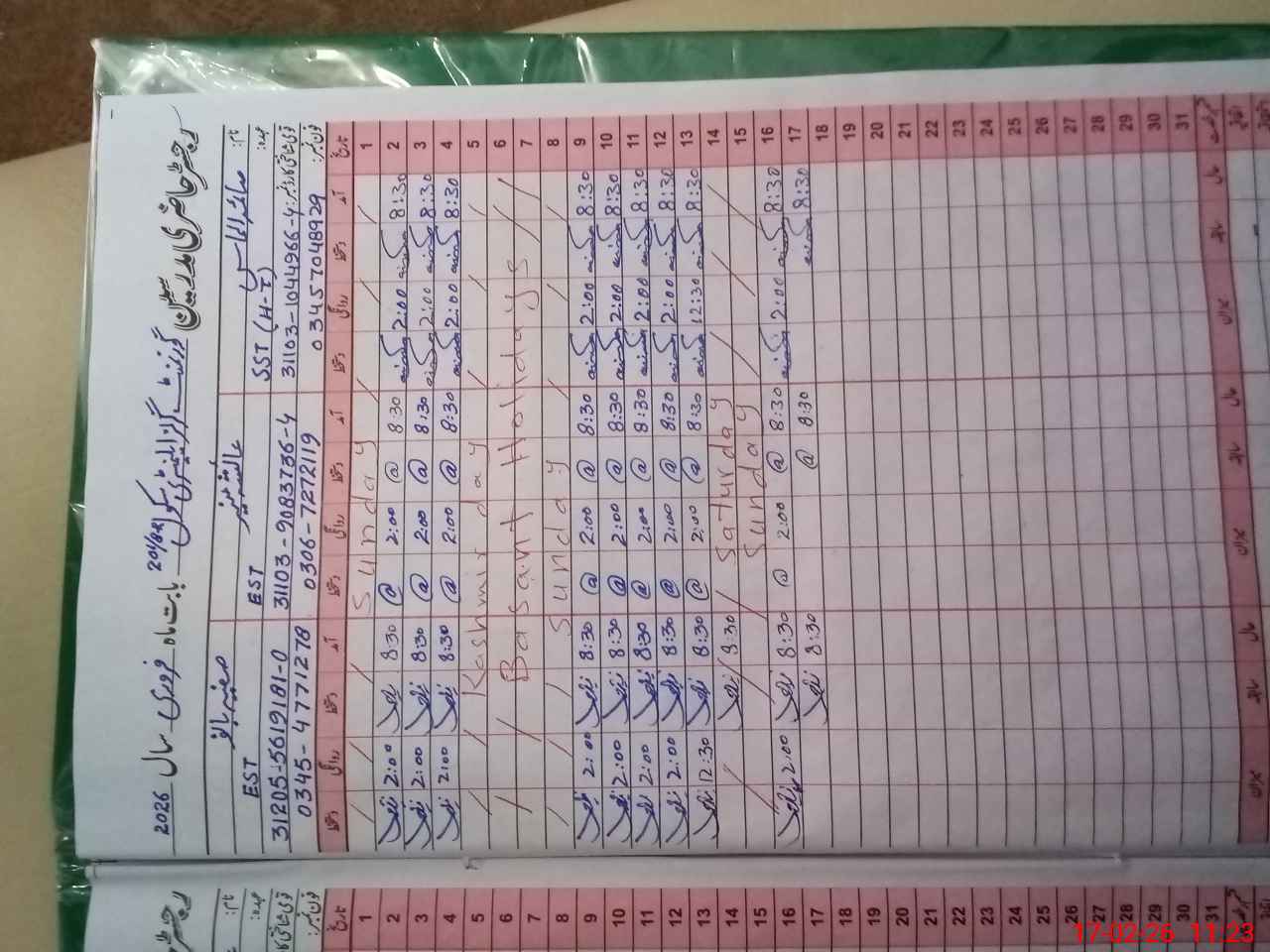 | Name: SA**** AL**** Designation: (School Headmaster's/Headmistress's) S.S.T.(Arts) Phone/Cell Number: 03**** |