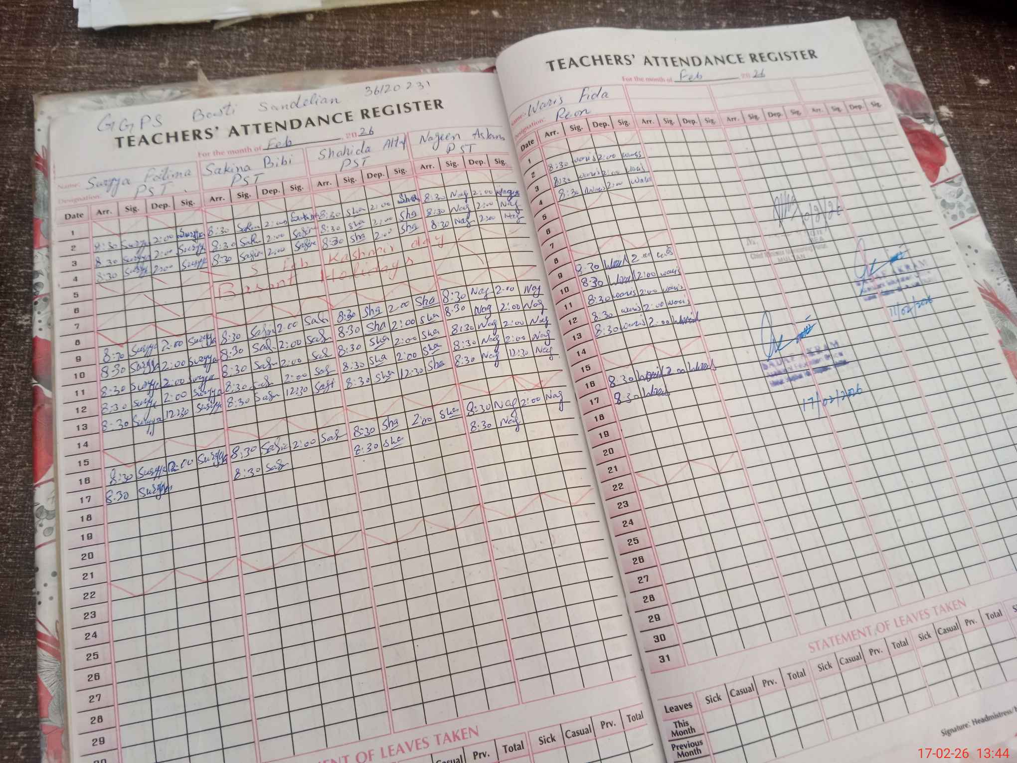 | Attendance Register | Head Teacher | MEA with School | Visit Proof |