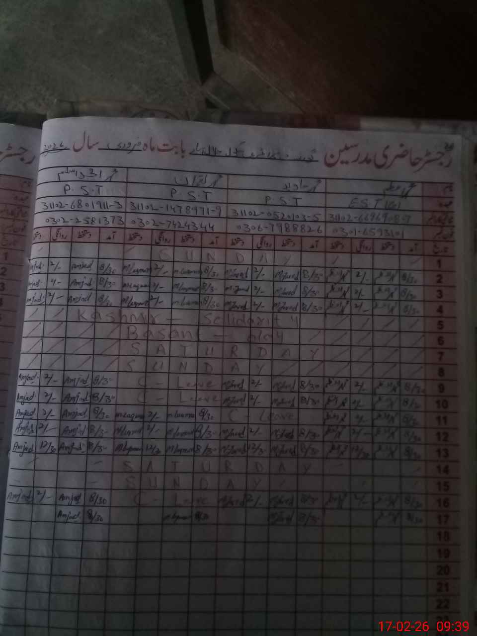 | Name: MU**** JA**** Designation: (School Headmaster's/Headmistress's) PST Phone/Cell Number: 03**** |