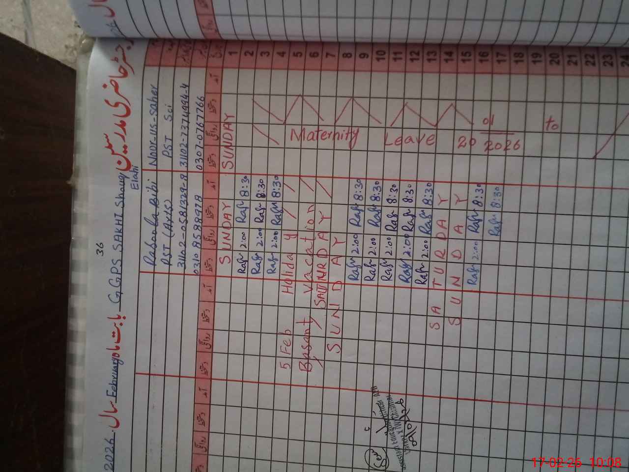 | Name: No**** Sa**** Designation: (School Headmaster's/Headmistress's) Pst Phone/Cell Number: 03**** |