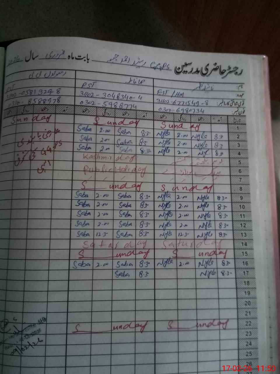 | CNIC | Full Name | Designation | R/C | Absence During Last Calender Month |