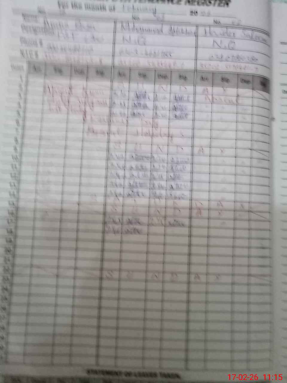 | 35**** | Ha**** Sa**** | NQ | 0 | 0 | 31 | 0 | 0 | 0 | 0 | 0 | 0 | Absent (Un-Authorized) | |