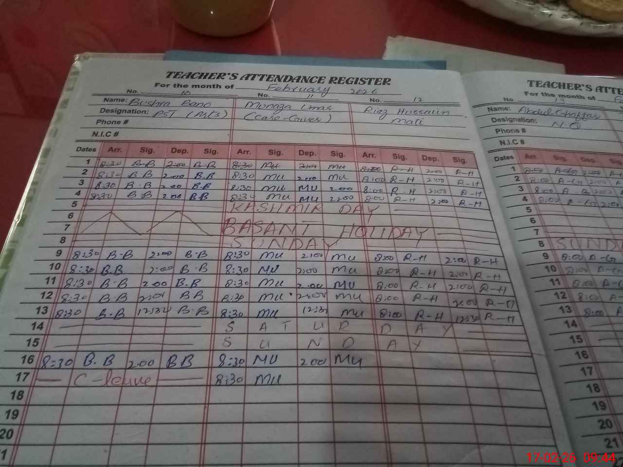 | 36**** | Sa**** Gh**** | PST Science/Maths | Regular | 0 | 0 | 0 | 0 | 0 | 0 | 0 | 0 | 0 | Maternity |