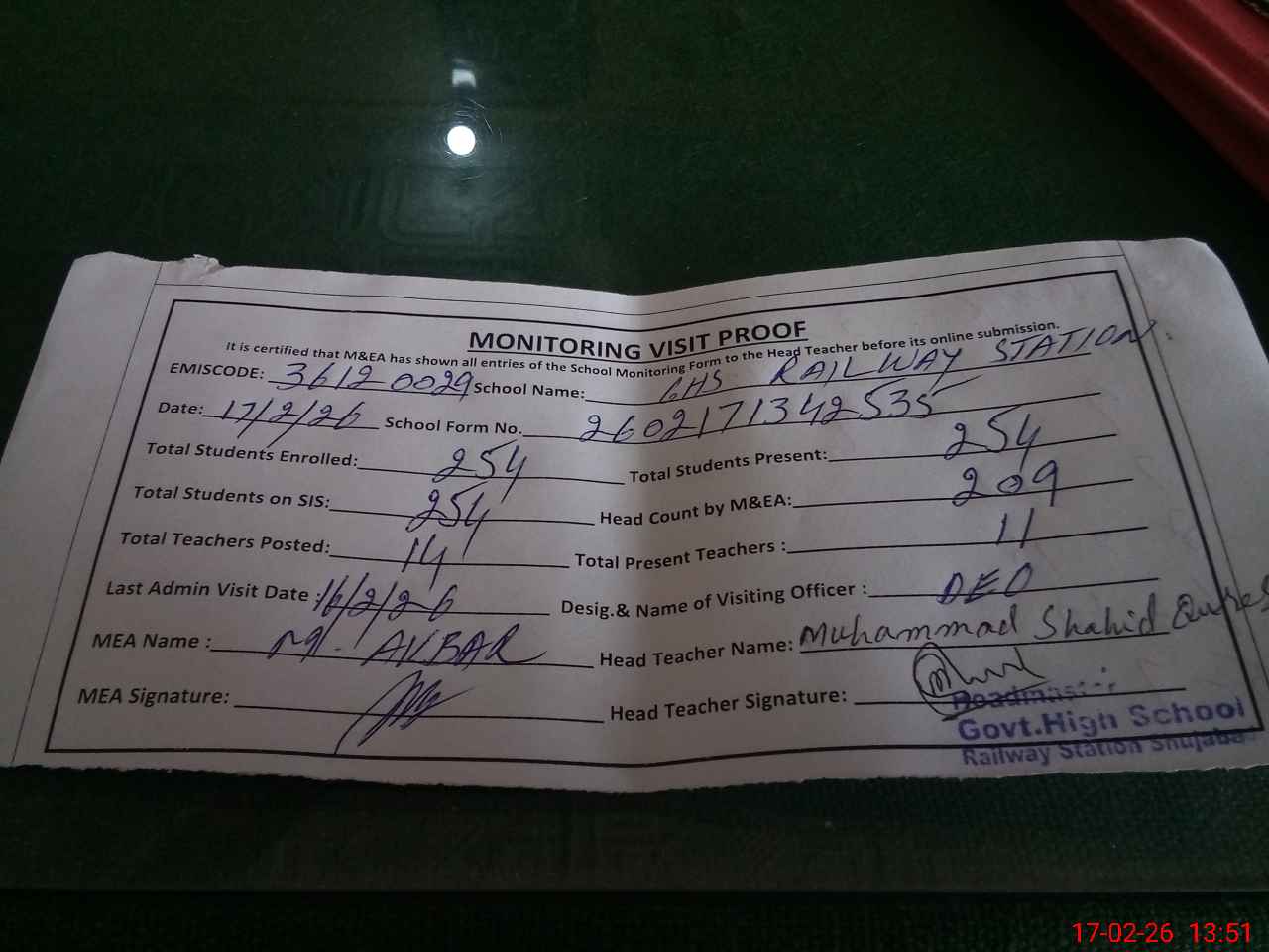 | EMIS Code: 36120029 | Name of School: GHS RAILWAY STATION SHUJABAD | |||