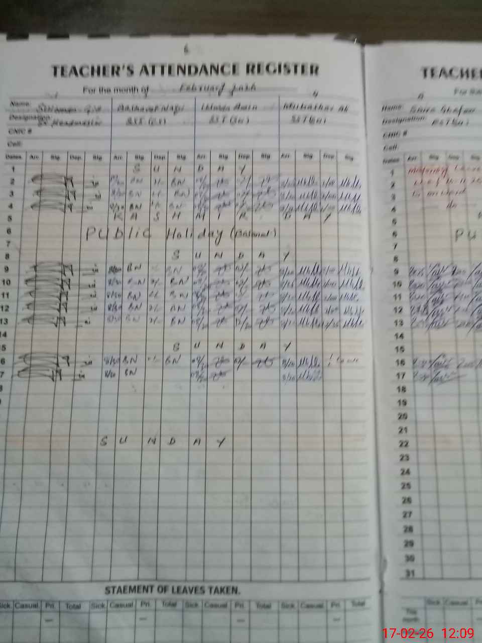 | CNIC | Full Name | Designation | R/C | Absence During Last Calender Month |