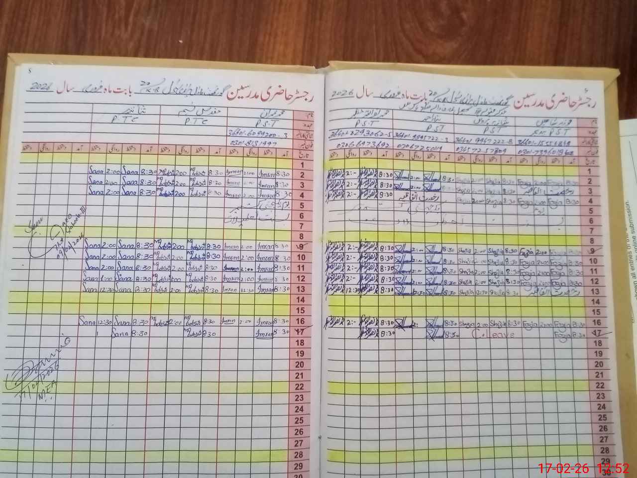 | Name: FO**** SH**** Designation: (School Headmaster's/Headmistress's) PST Phone/Cell Number: 03**** |