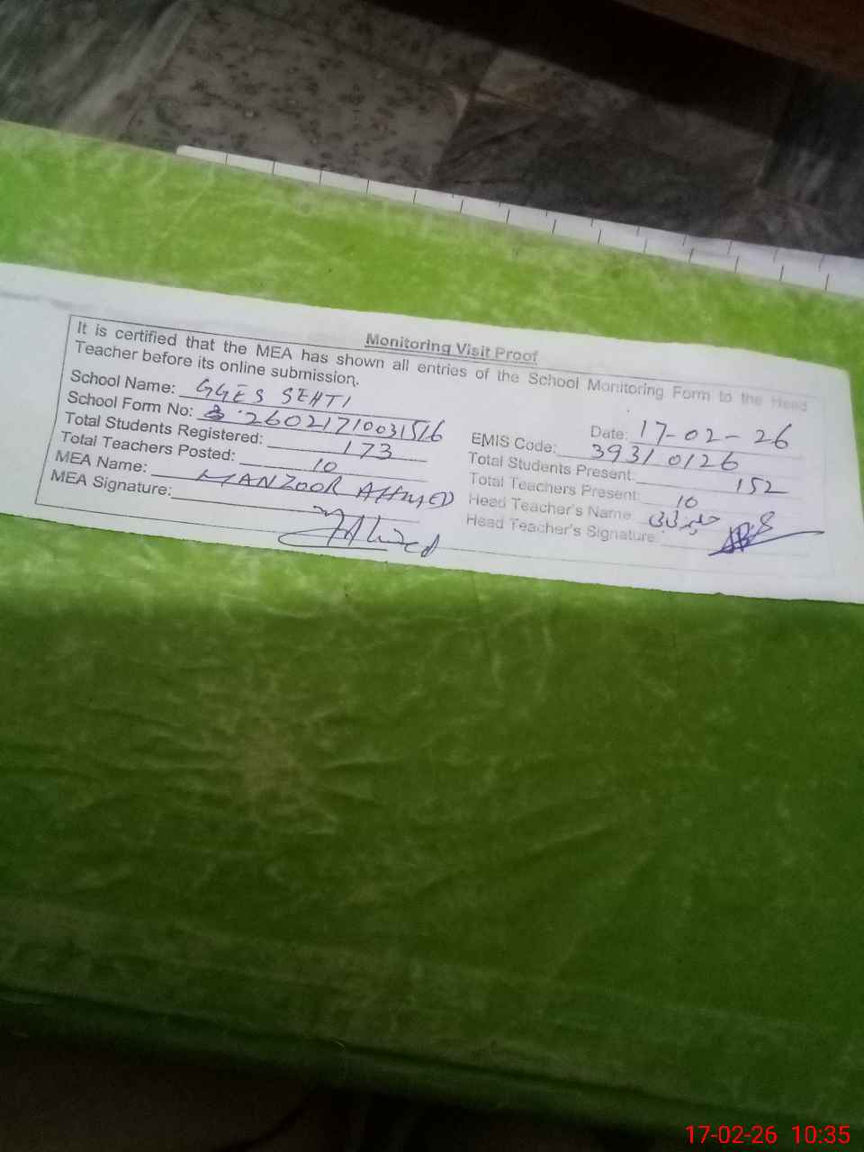| EMIS Code: 39310126 | Name of School: GGES SEHTI | |||