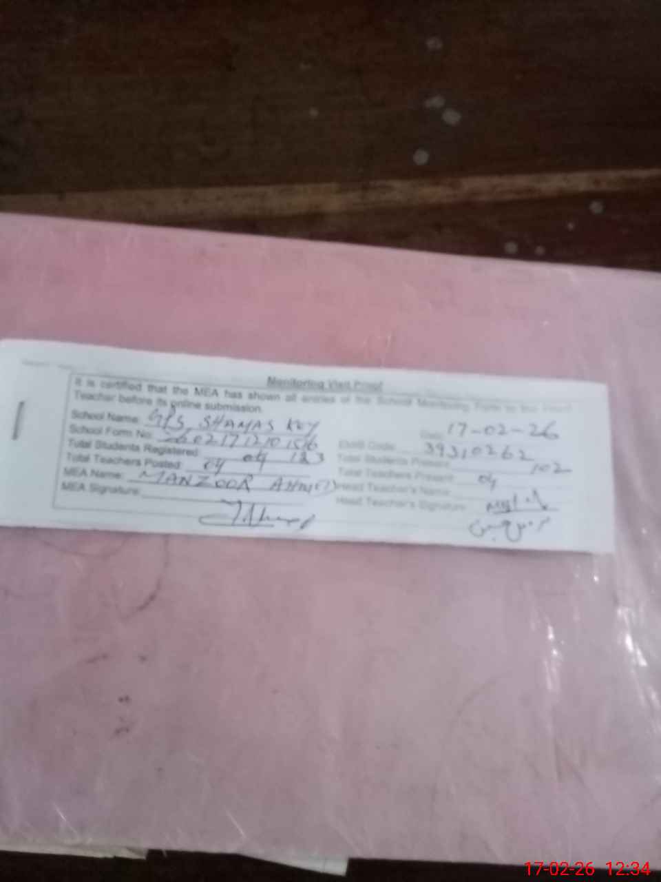 | EMIS Code: 39310262 | Name of School: GPS SHAMAS KAY | |||