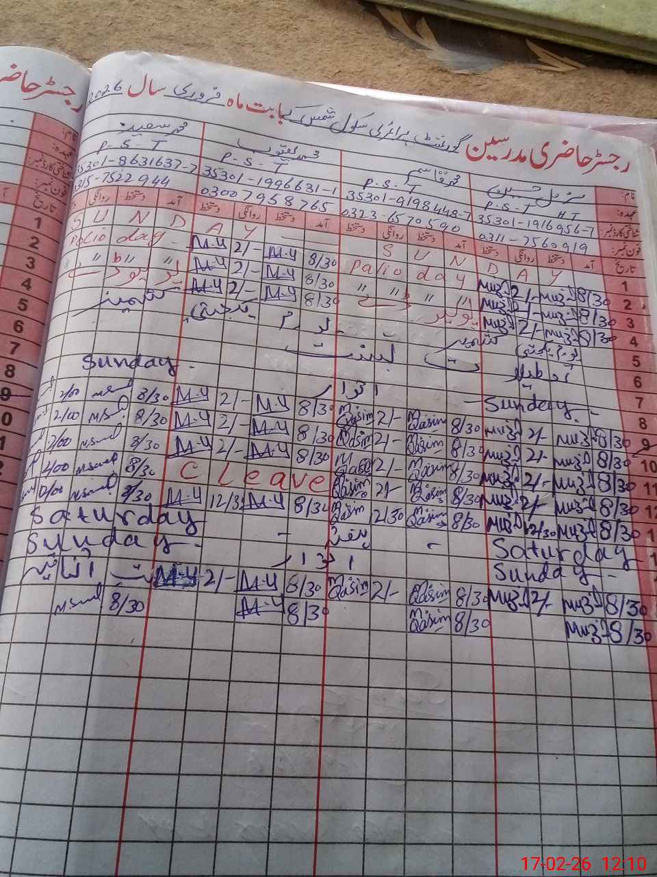 | Name: Mu**** Ah**** Designation: (School Headmaster's/Headmistress's) PST Phone/Cell Number: 03**** |