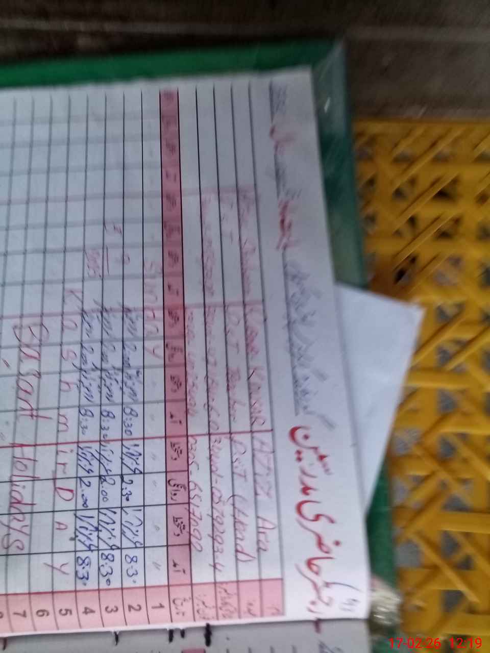 | Name: AZ**** AR**** Designation: (School Headmaster's/Headmistress's) PTC/JV Phone/Cell Number: 03**** |