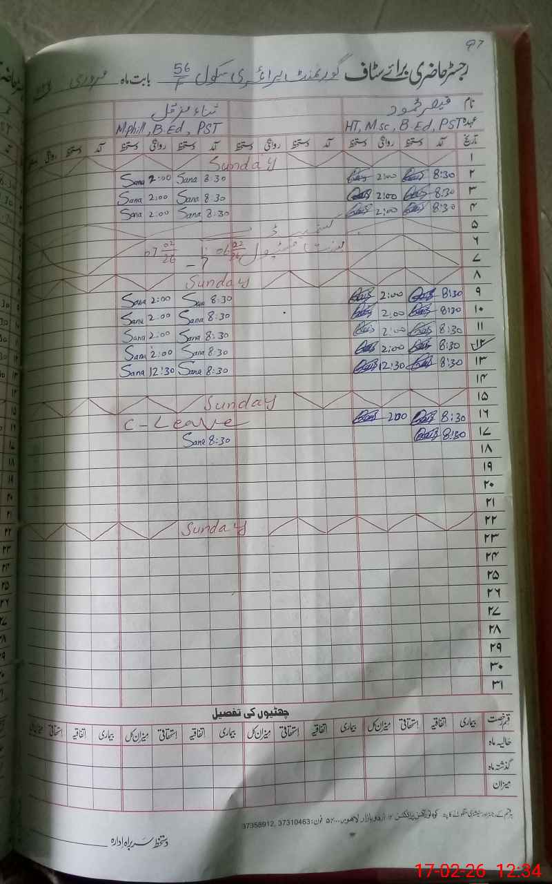 | Name: Qa**** Ma**** Designation: (School Headmaster's/Headmistress's) PST Phone/Cell Number: 03**** |