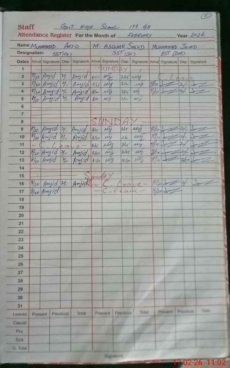 | EMIS Code: 33130373 | Name of School: GHS CHAK 199 GB KHIDARWALA SAMUNDRI FSD | |||