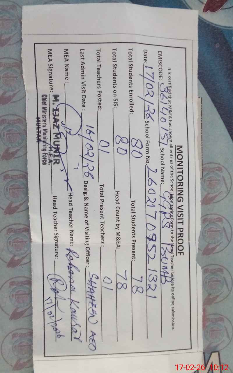| EMIS Code: 36140151 | Name of School: GGPS BAMB JALALPUR PIRWALA | |||