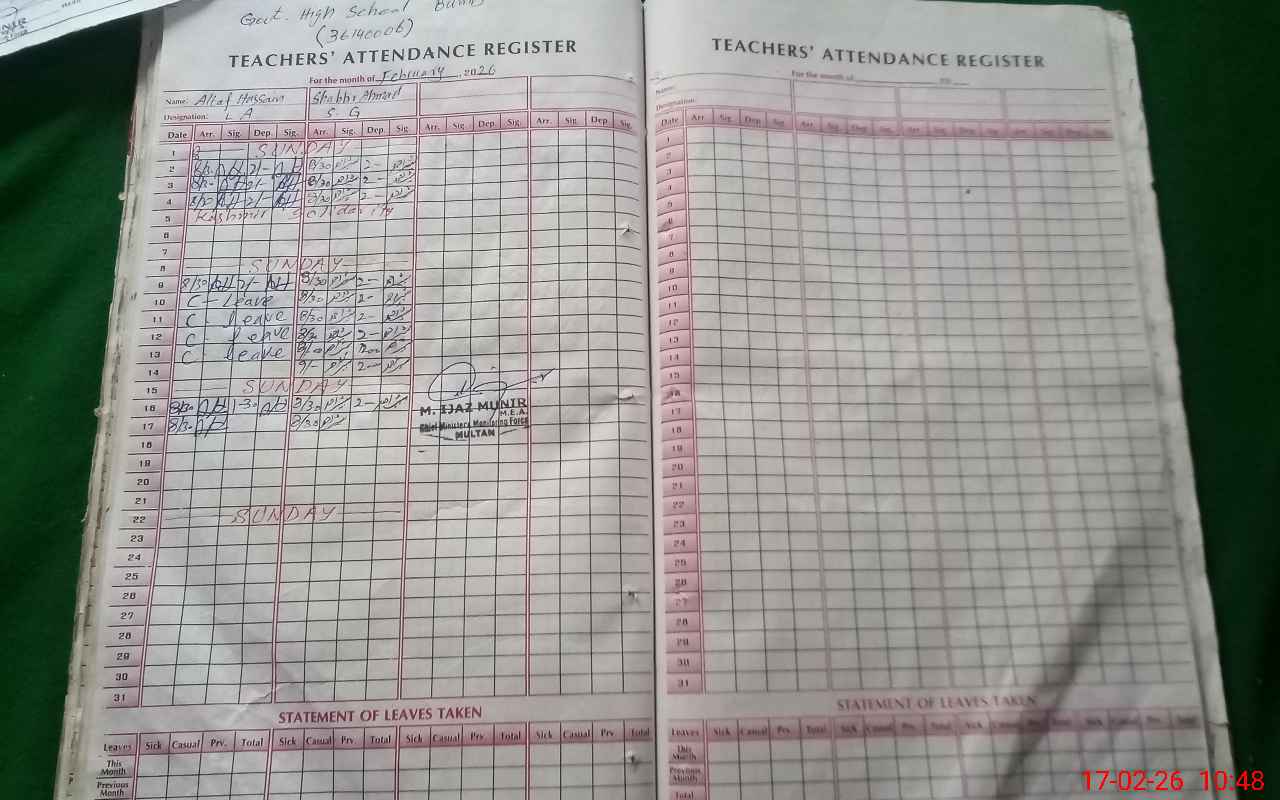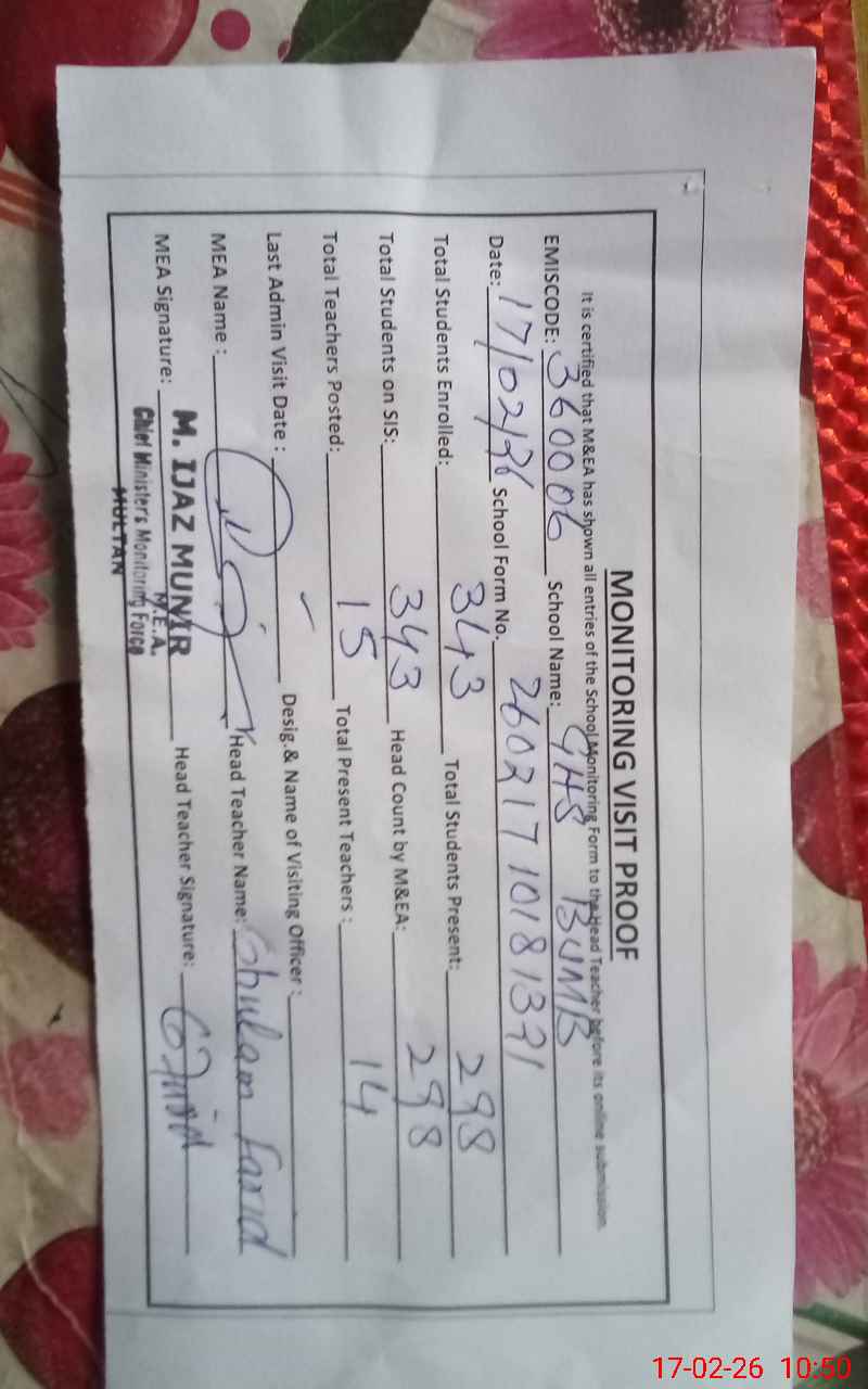 | EMIS Code: 36140006 | Name of School: GHS BUMB JALALPUR PIRWALA | |||