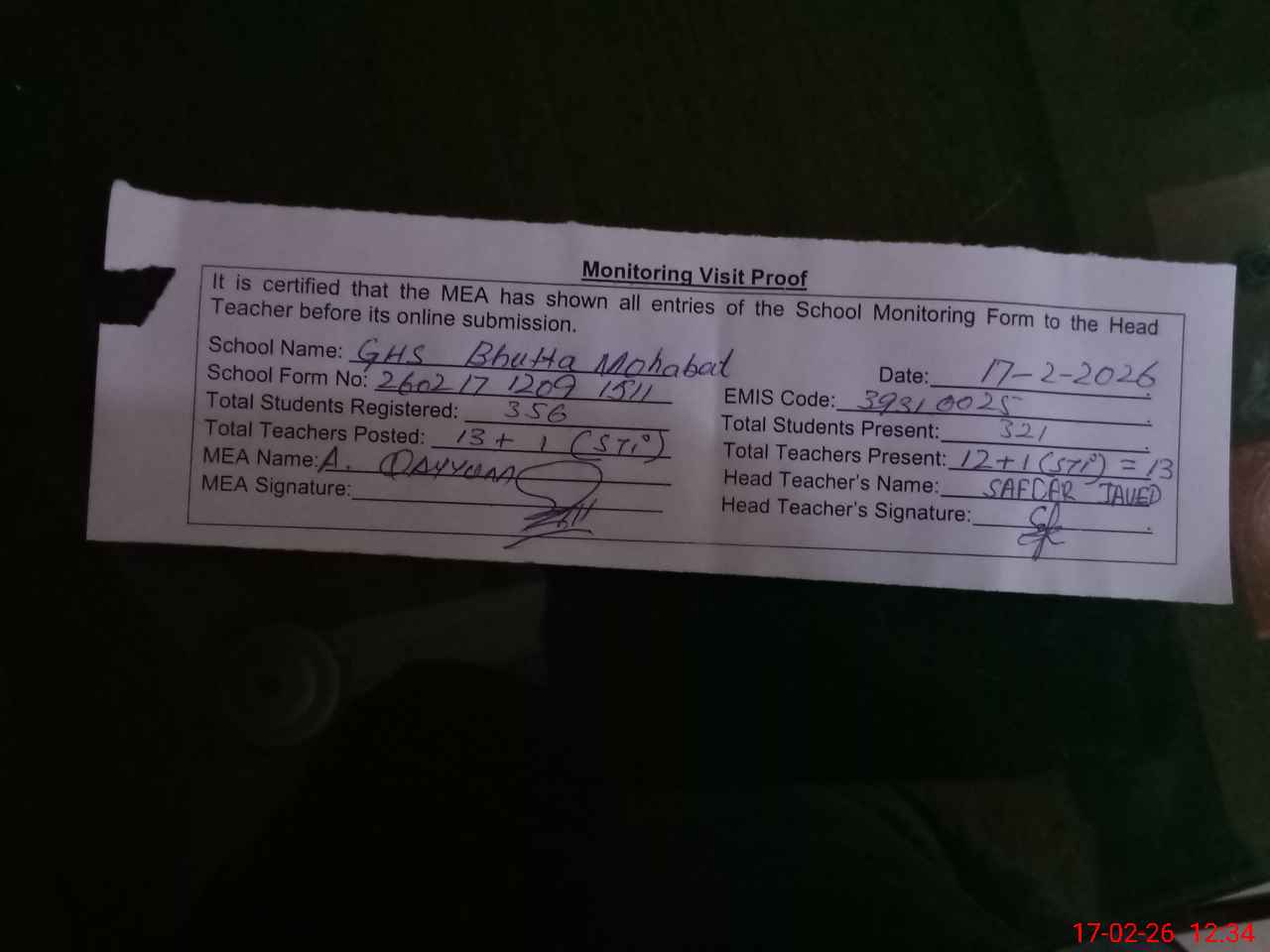 | EMIS Code: 39310025 | Name of School: GHS BHUTTA MOHABAT | |||