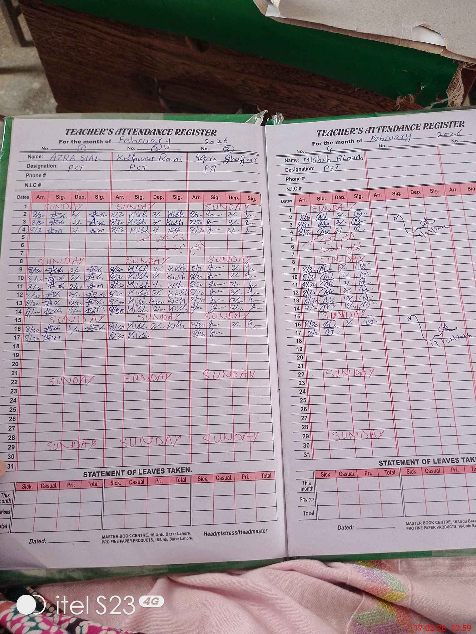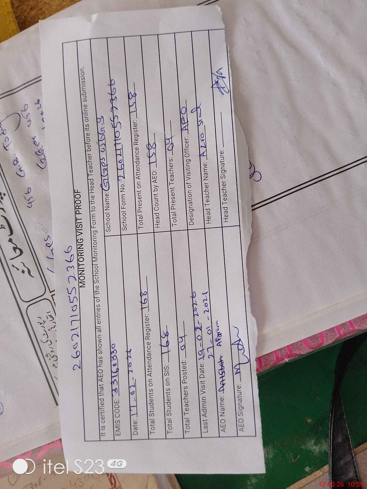 | Name: AZ**** SI**** Designation: (School Headmaster's/Headmistress's) PST Phone/Cell Number: 03**** |