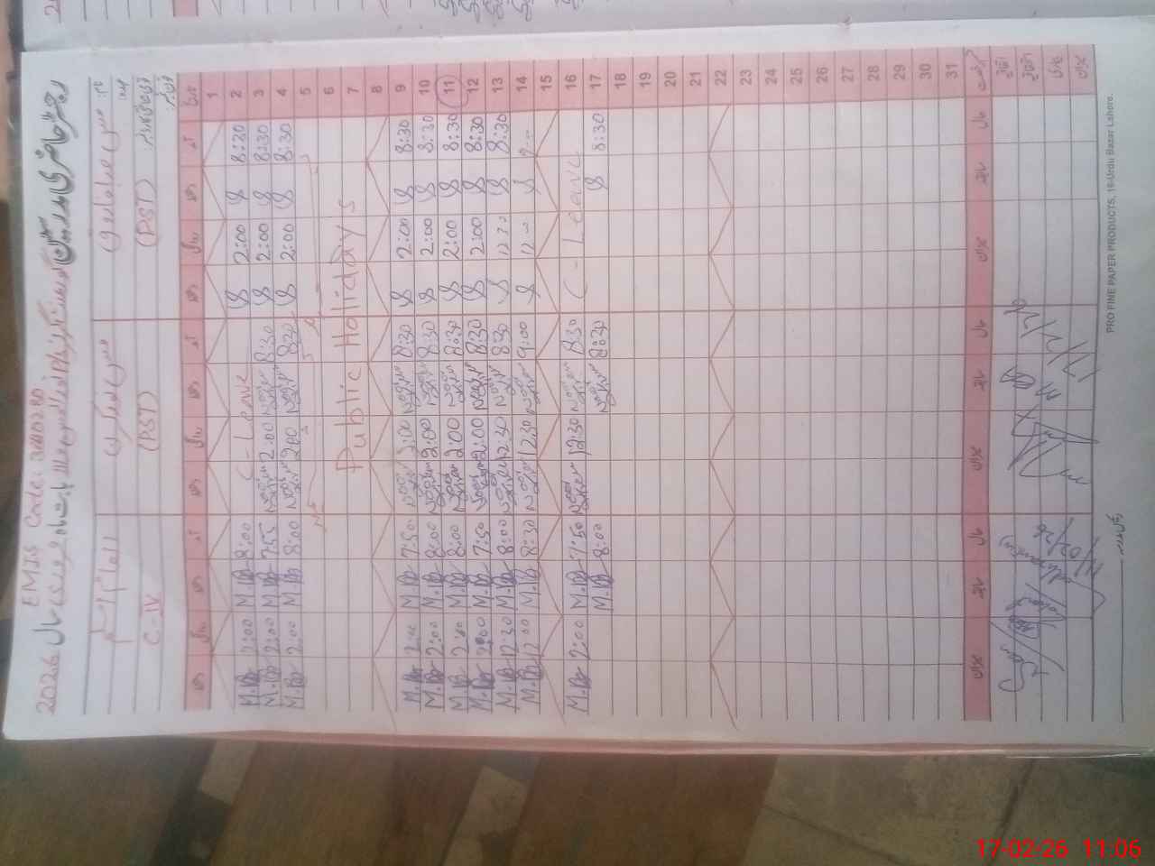 | CNIC | Full Name | Designation | R/C | Absence During Last Calender Month |