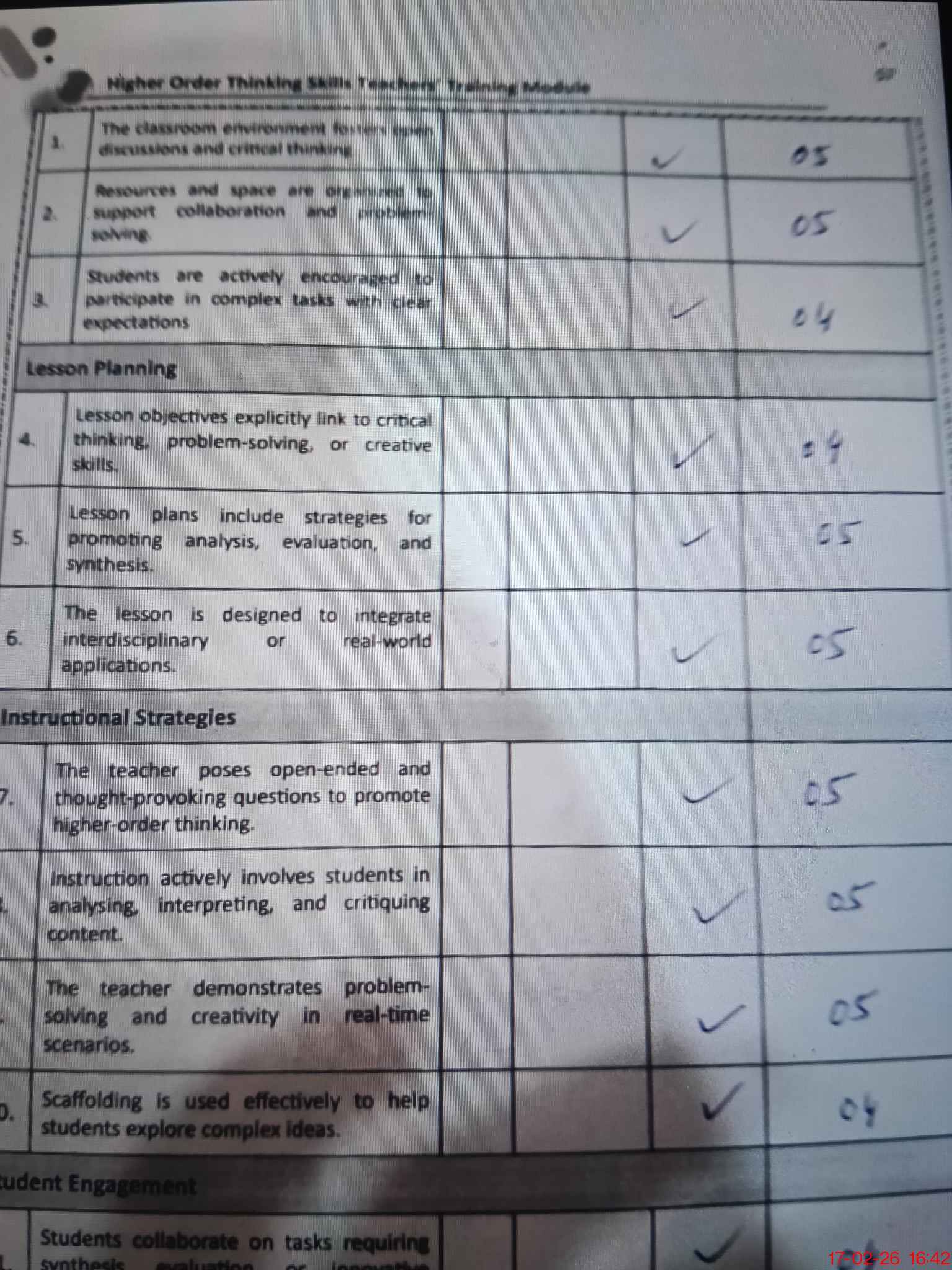 | Presence Of Teaching Staff | 5 | 5 | 0 |