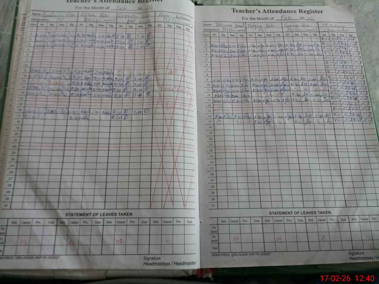 | Remarks (Use Separate Page if Required): Teacher Tehmina Javed PST Science Maths is shown on C leave in attendance register while no on line approval and no sanctioned application found in school So I marked her as in authorised absent N Qasid Muhammad Nazeer shown on C leave in attendance register while no sanctioned application found in school So I marked him as un authorised absent NSB record not updated in pmiu app | |||||