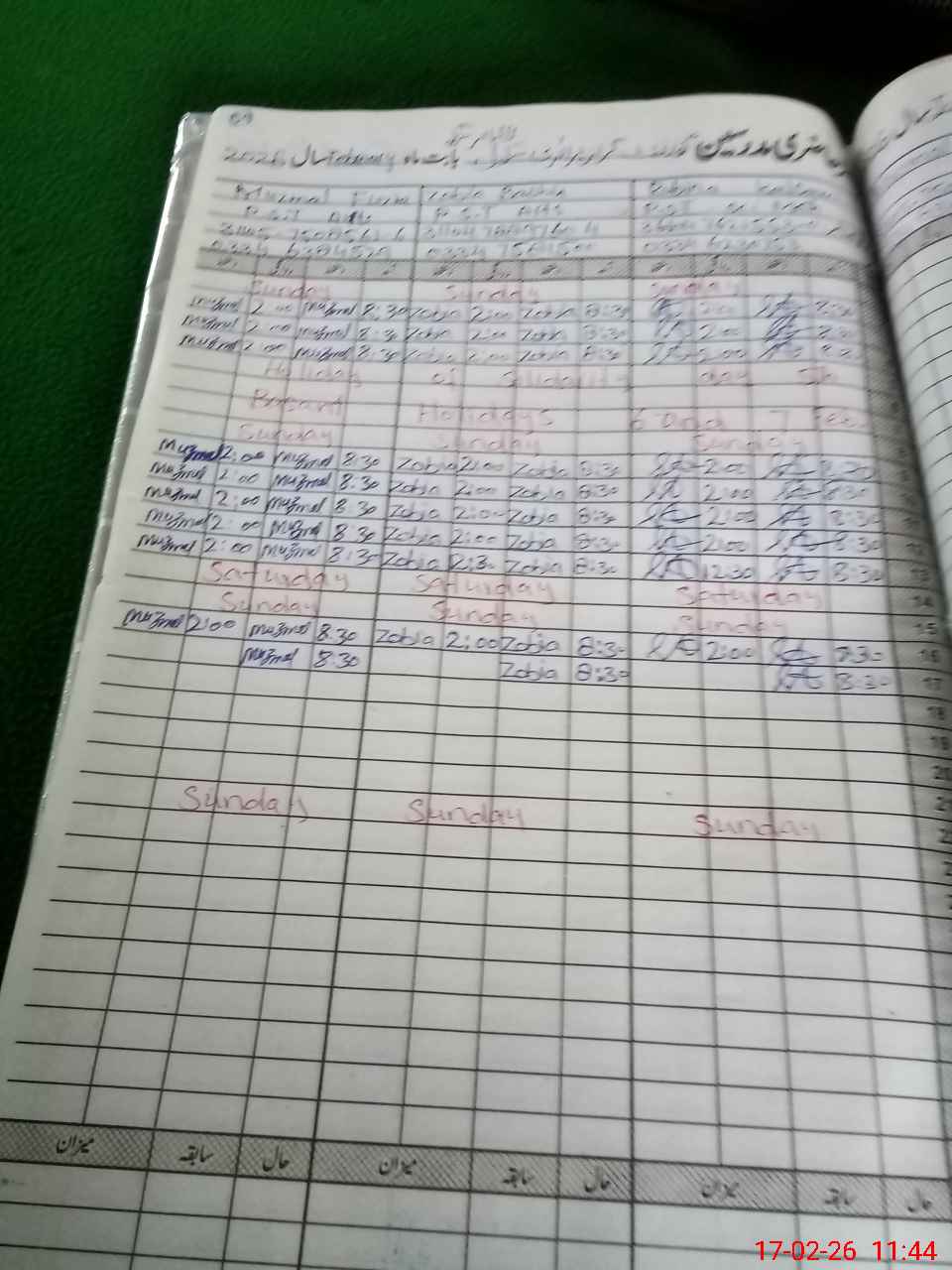 | CNIC | Full Name | Designation | R/C | Absence During Last Calender Month |