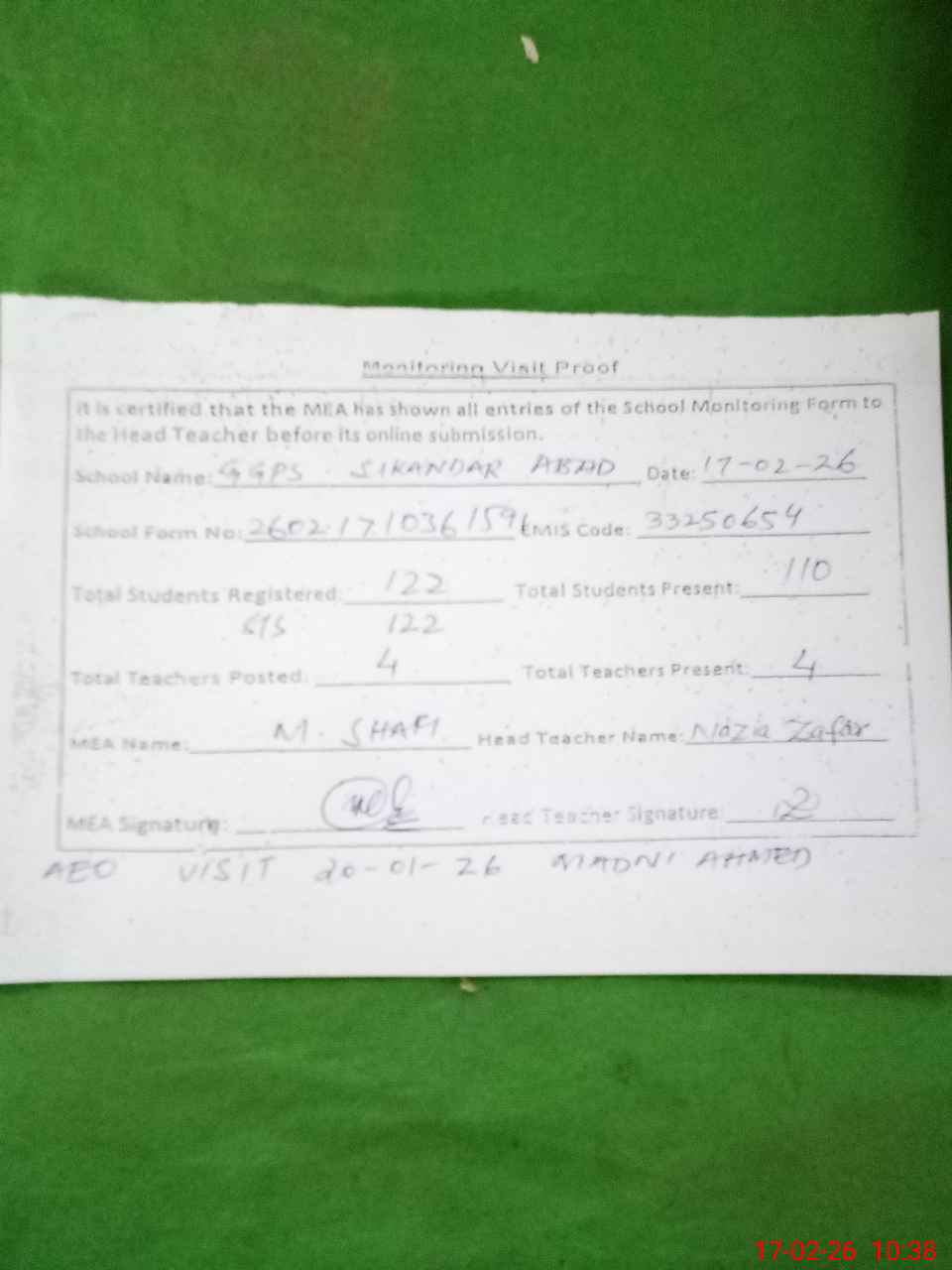 | EMIS Code: 33250654 | Name of School: GGPS SIKANDAR ABAD | |||