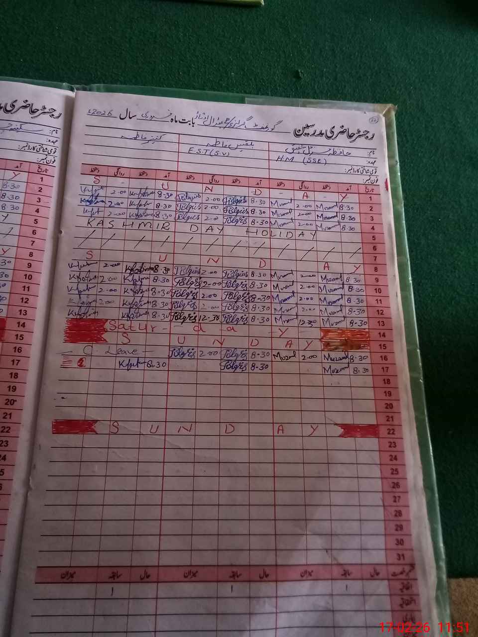 | CNIC | Full Name | Designation | R/C | Absence During Last Calender Month |