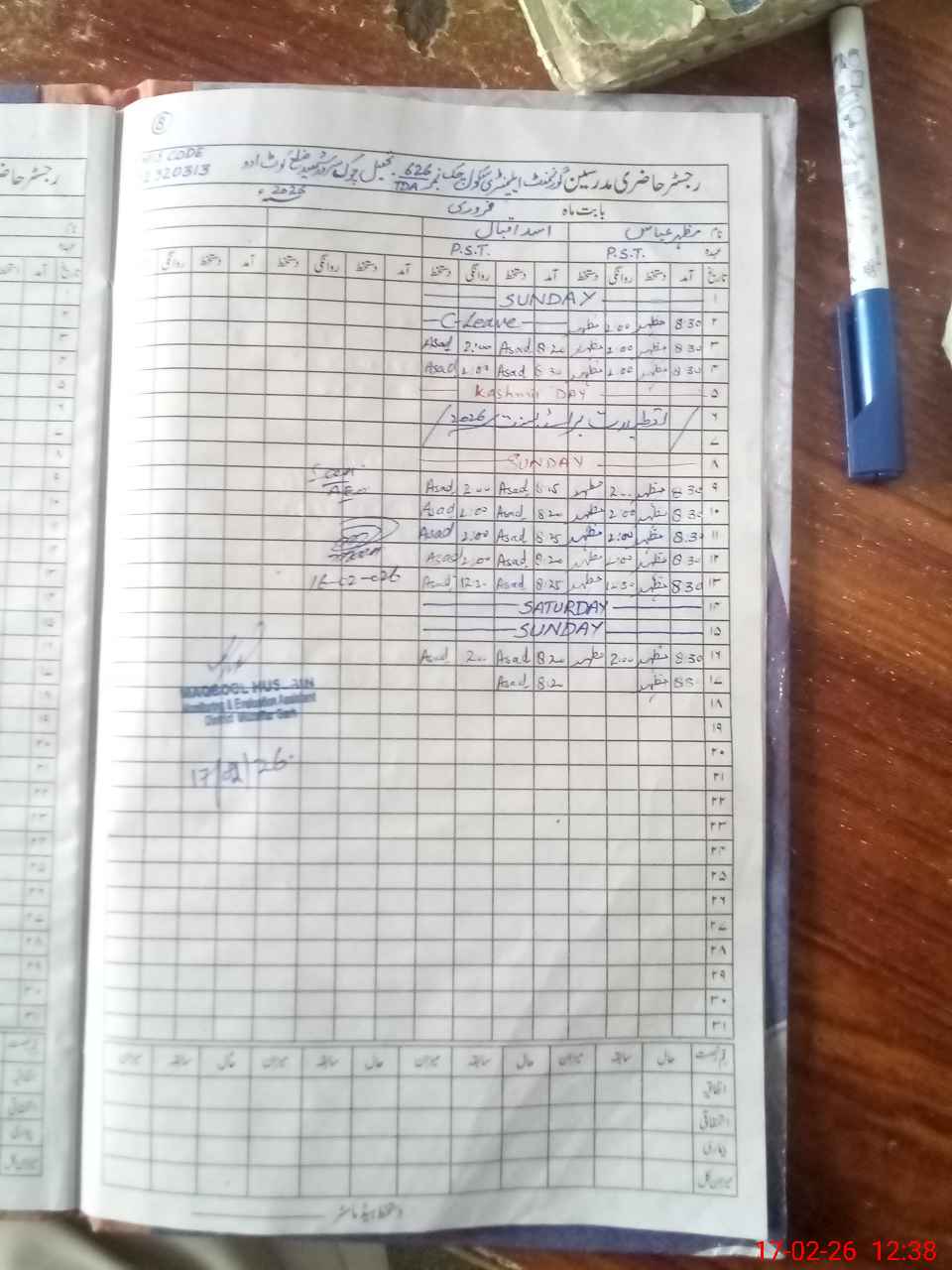 | Name: M.**** Designation: (School Headmaster's/Headmistress's) S.S.T.(GEN) Phone/Cell Number: 03**** |