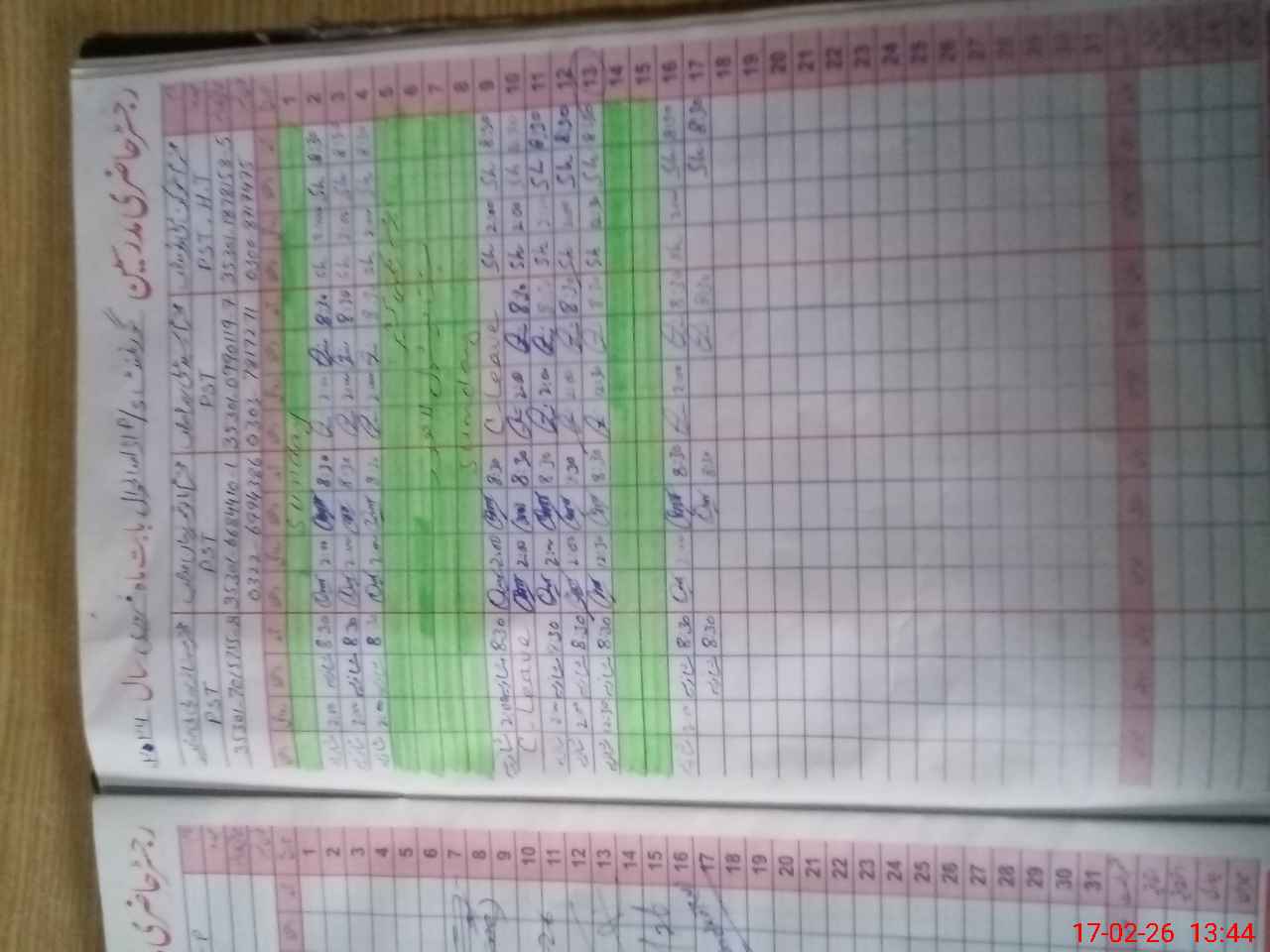 | CNIC | Full Name | Designation | R/C | Absence During Last Calender Month |