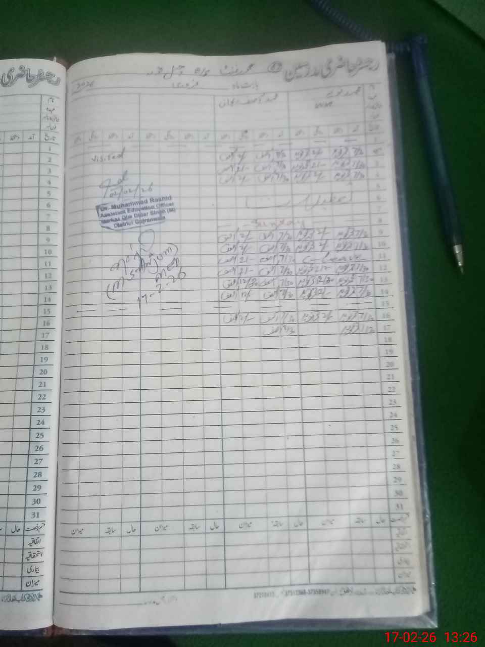 | CNIC | Full Name | Designation | R/C | Absence During Last Calender Month |