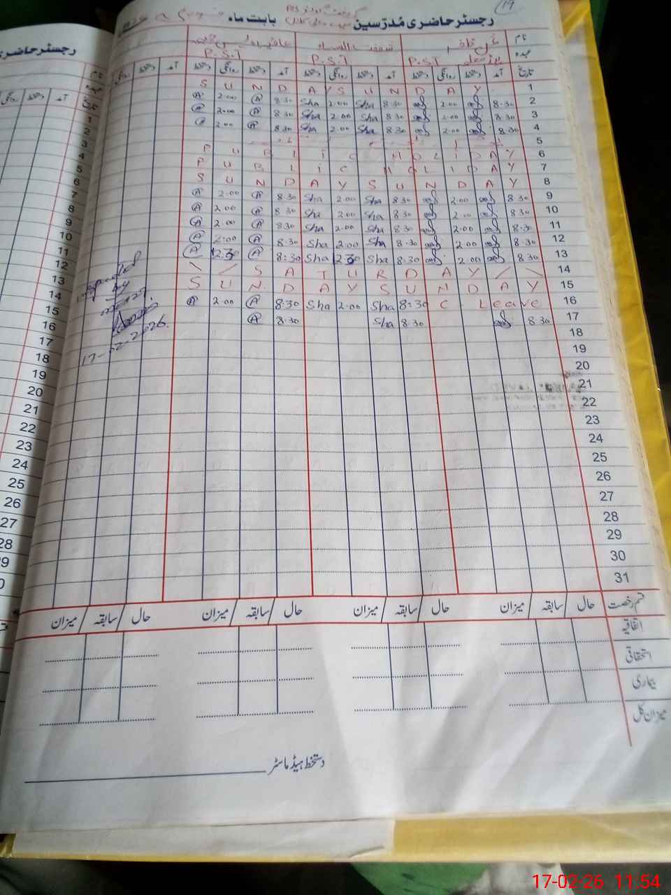 | Name: Sa**** Za**** Designation: (School Headmaster's/Headmistress's) PST/BED Phone/Cell Number: 03**** |