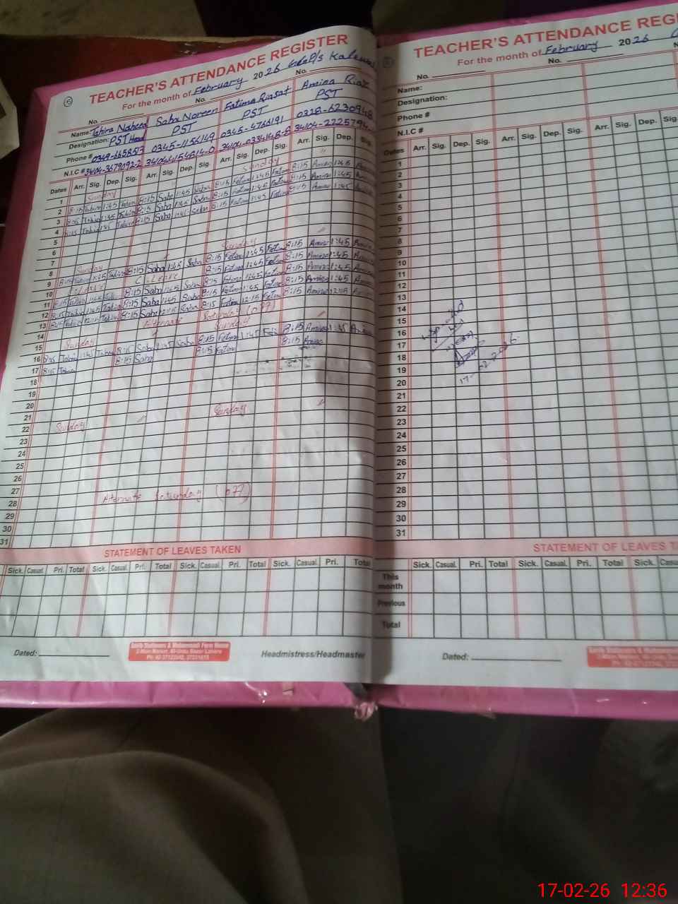 | Name: TA**** NA**** Designation: (School Headmaster's/Headmistress's) PST/PTC/JV Phone/Cell Number: 03**** |