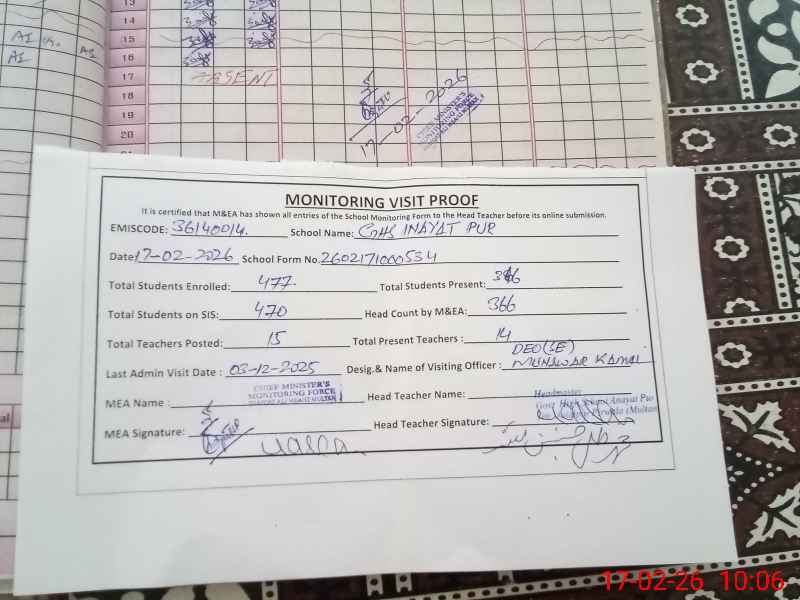 | EMIS Code: 36140014 | Name of School: GHS ANAYAT PUR | |||