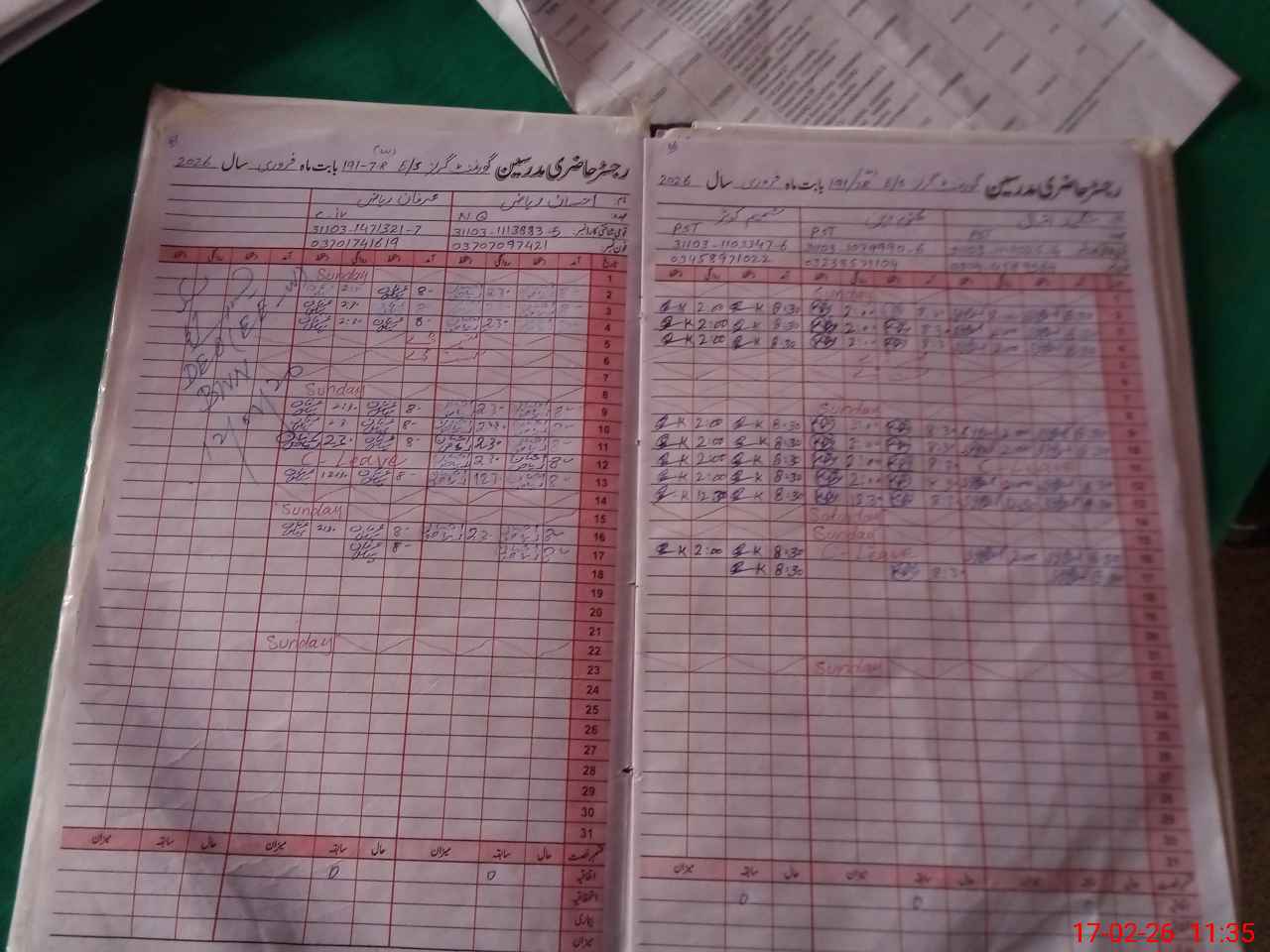 | CNIC | Full Name | Designation | R/C | Absence During Last Calender Month |