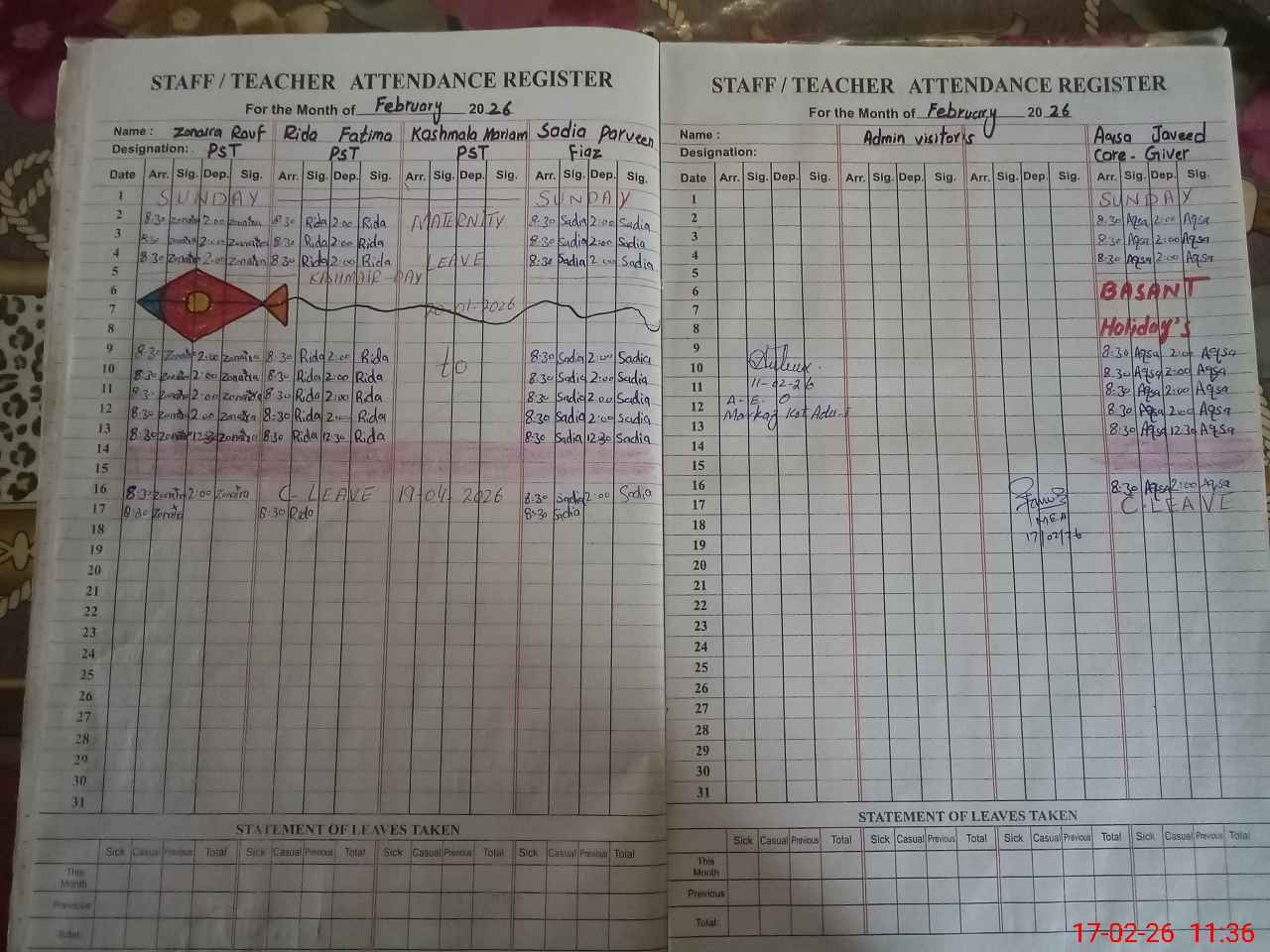 | 32**** | Ka**** Ma**** | PST Arts | Regular | 0 | 0 | 0 | 0 | 0 | 0 | 0 | 0 | 0 | Maternity |