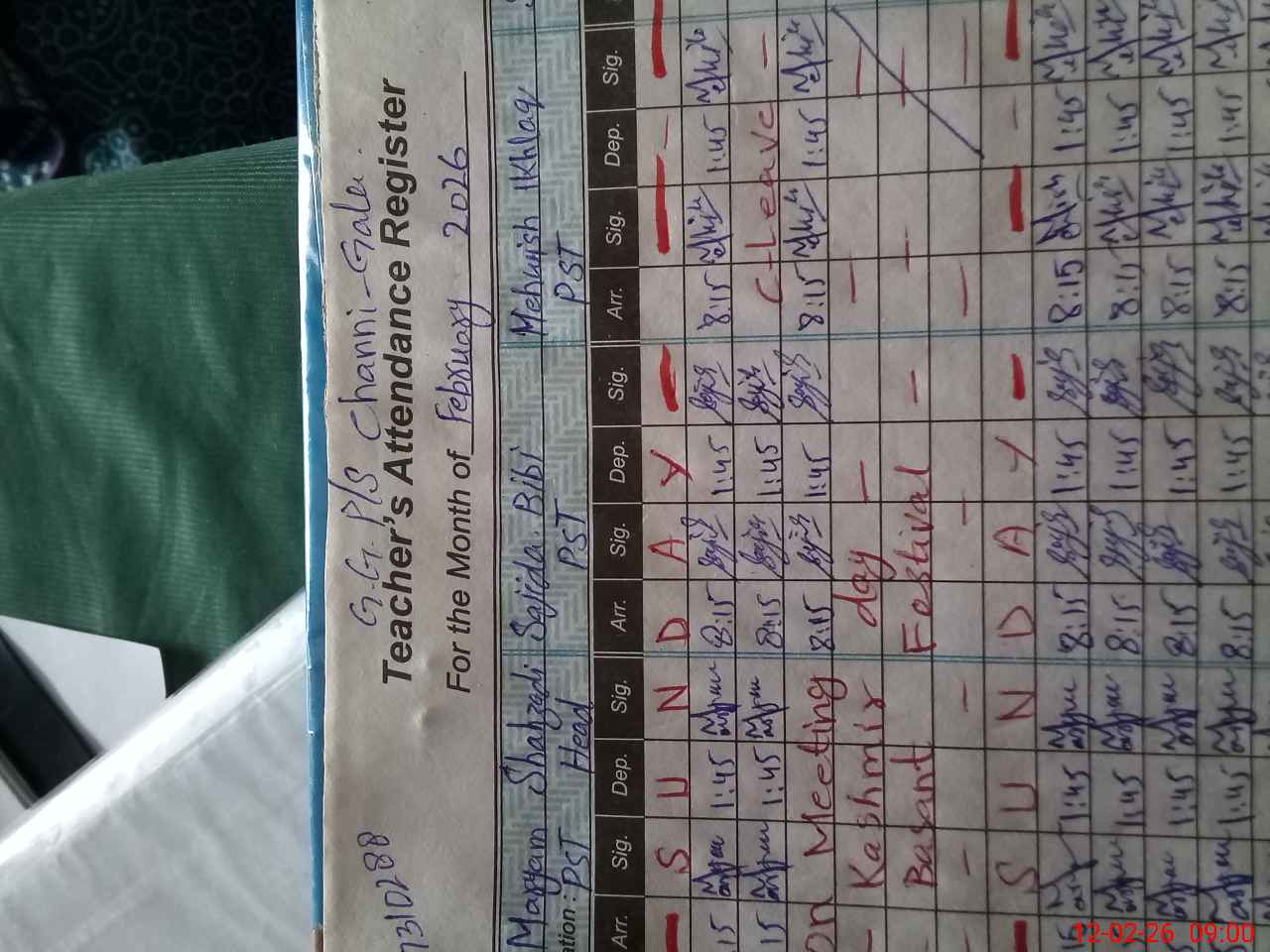 | Name: Ma**** Sh**** Designation: (School Headmaster's/Headmistress's) PST (Sci Math) Phone/Cell Number: 03**** |