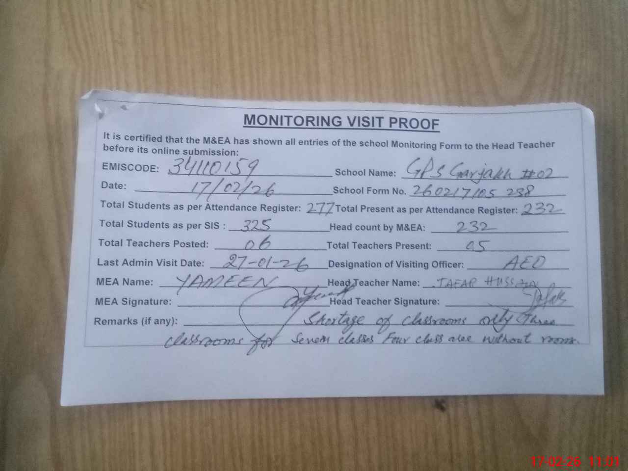 | EMIS Code: 34110159 | Name of School: GPS GHARJAKH NO.2 | |||