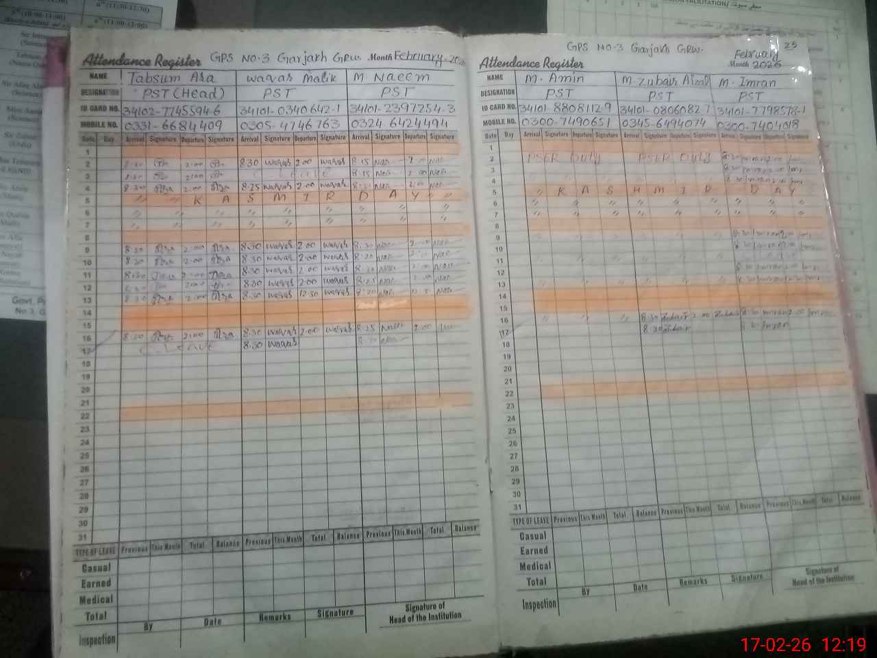 | 34**** | Ab**** Bu**** | PST Science/Maths | Regular | 0 | 0 | 0 | 0 | 0 | 0 | 0 | 0 | 0 | Casual |